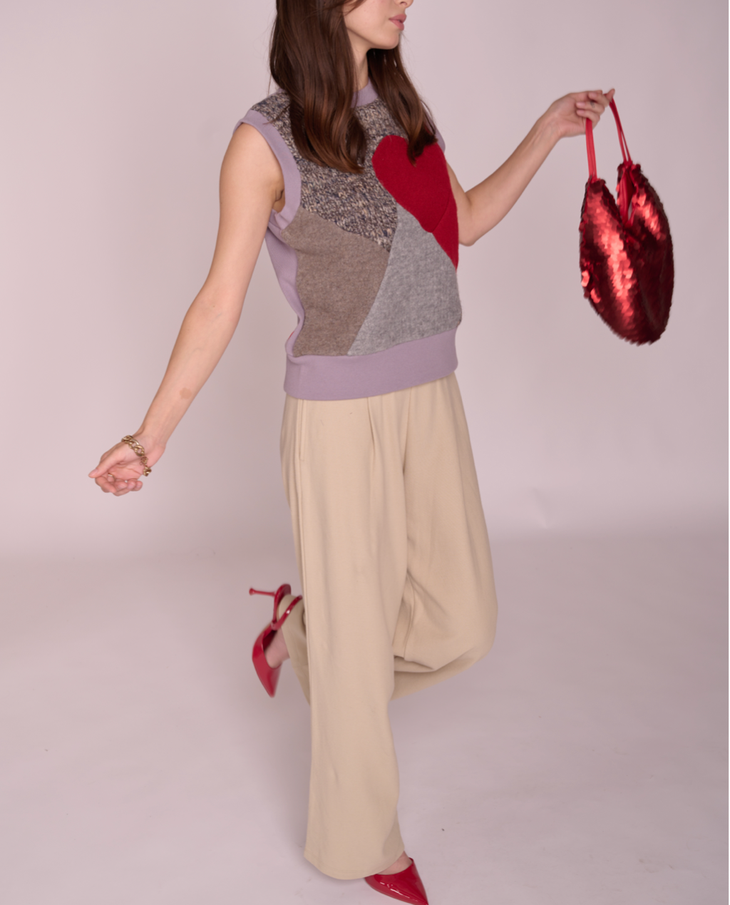 Constructed with a curated selection of upcycled wool sweaters, creating a unique sweater vest featuring our signature heart patch design. Fully lined with new material and rib fabric on the back.