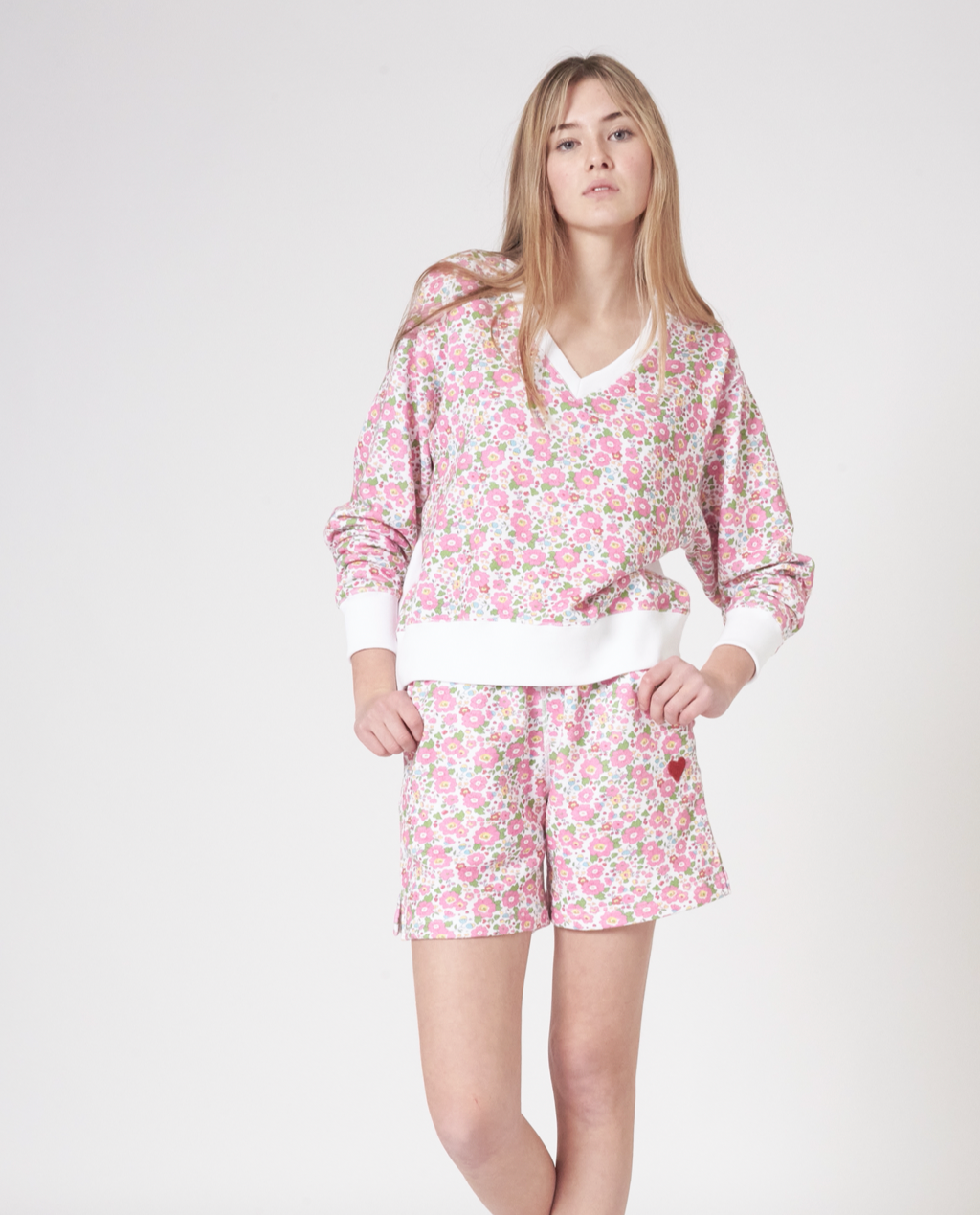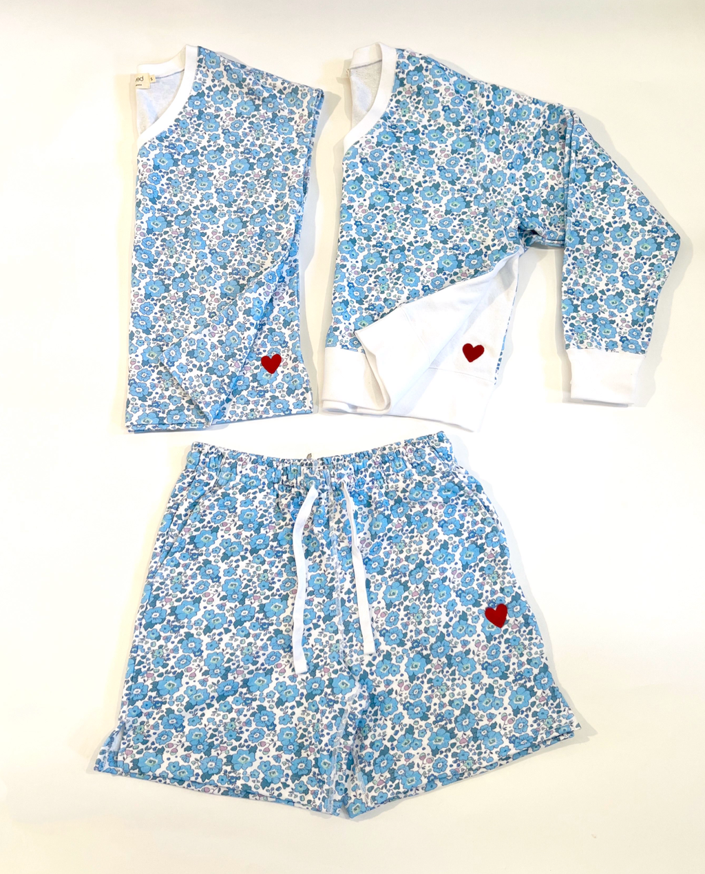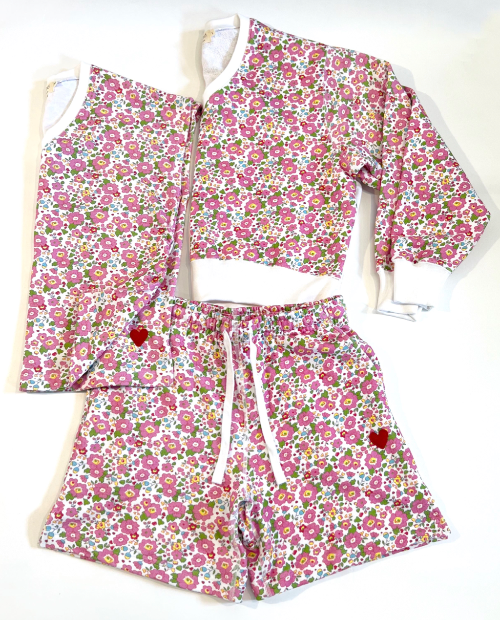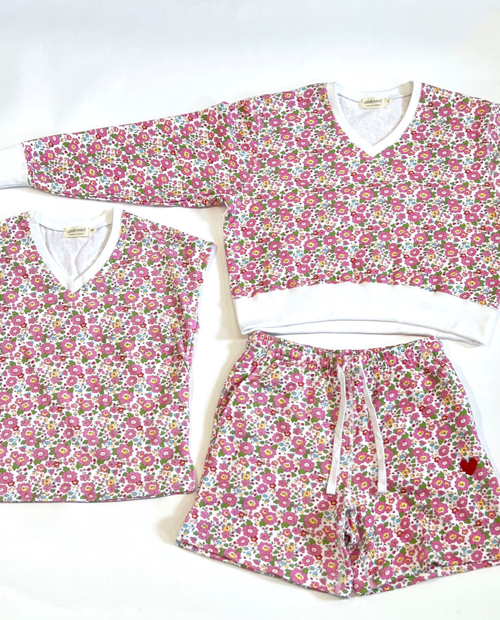 The Blossomy 3-piece bundle features the Cranleigh Sweatshirt, Charleston Top, and Lancing Shorts. All pieces made with 100% cotton and features our sustainable all-over-print (with biodegradable ink!). Savings of $137 in this bundle!