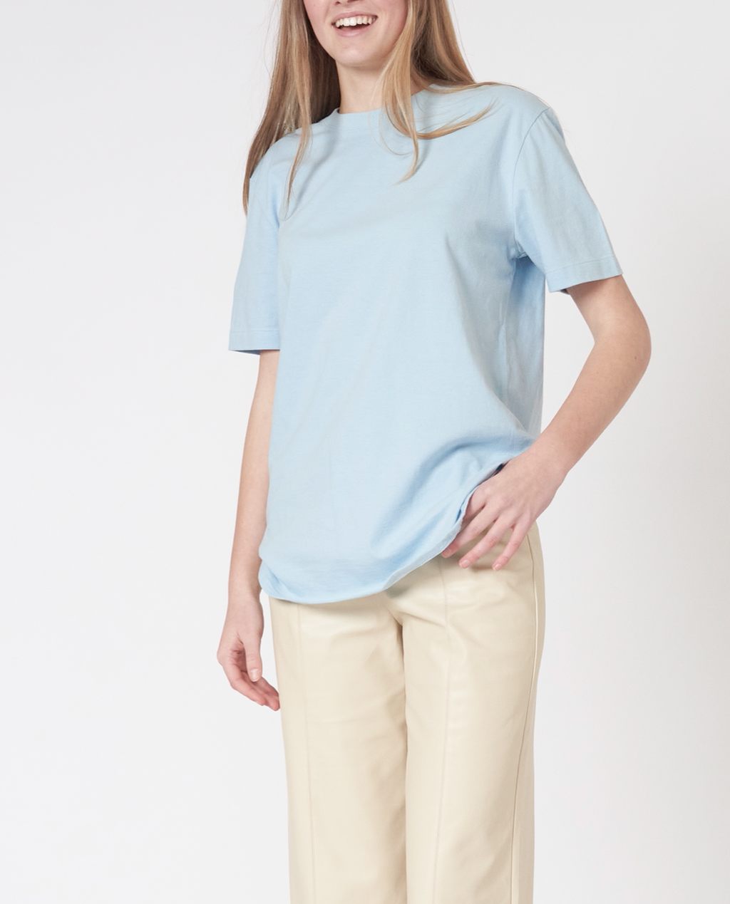 This classically chic and sustainable tee is made with 100% cotton, and 50% recycled yarn. Featuring our signature heart patch on the back and rounded hem.