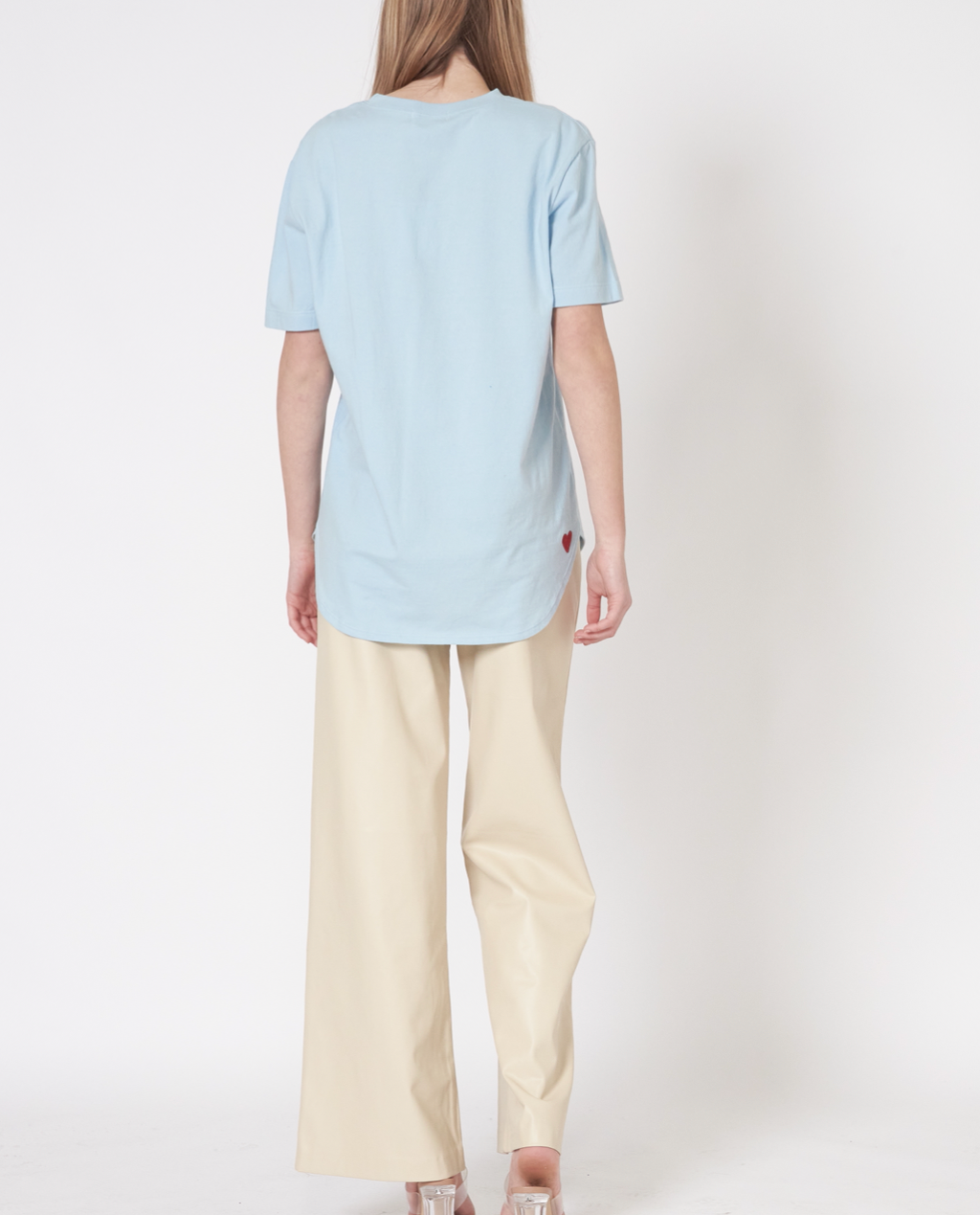 This classically chic and sustainable tee is made with 100% cotton, and 50% recycled yarn. Featuring our signature heart patch on the back and rounded hem.