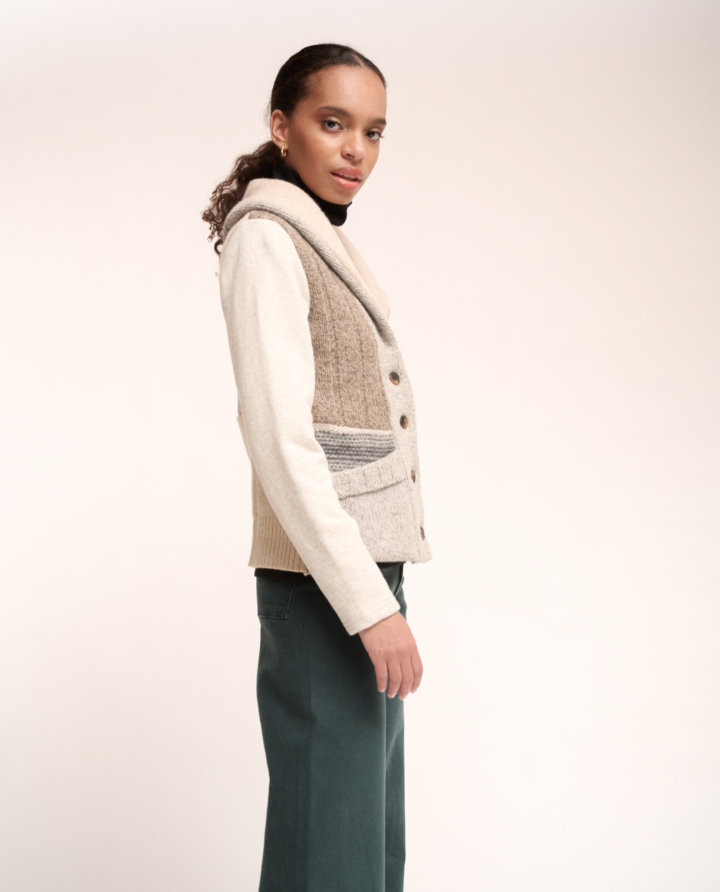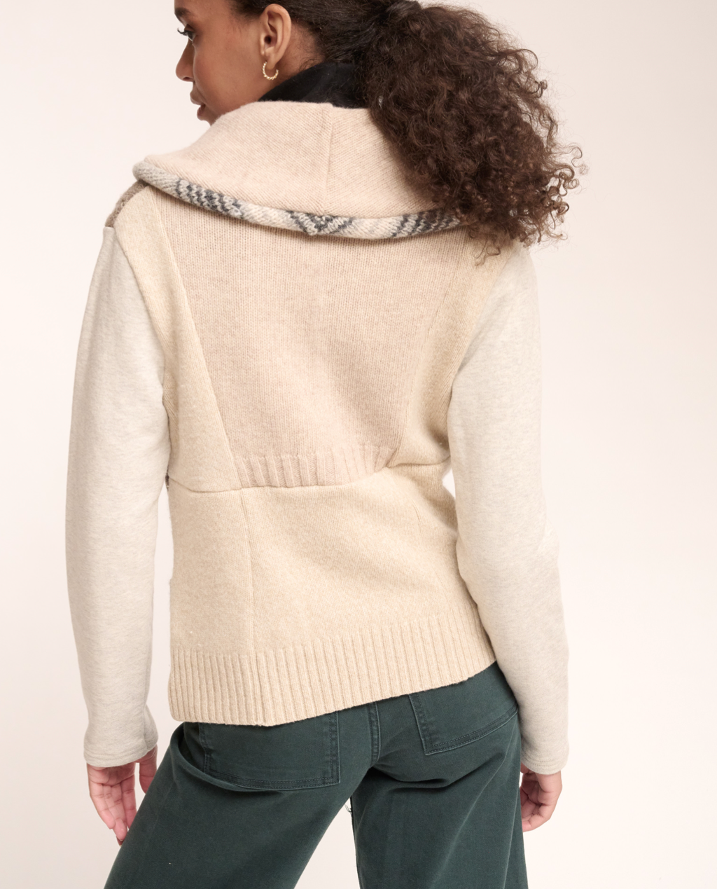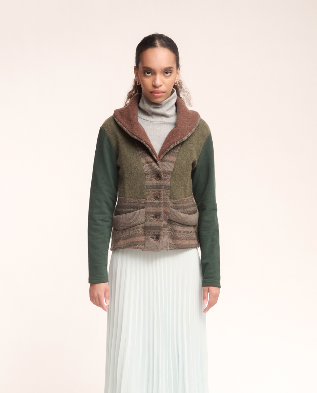 Ciao Miss Ellie! This classic preloved piece is back, and better - with an updated silhouette! Featuring a body constructed from 4 upcycled wool sweaters, and sleeves made from a cozy 100% cotton french terry - she'll be your go-to all winter long! Makes for the perfect fall jacket, or cardigan, for the cooler months. And just like the original, no two are alike, a truly unique piece - each handcrafted and curated with love.