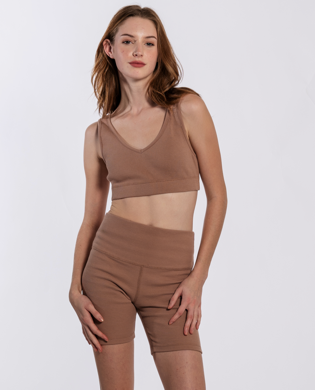 Flattering and offering light support, this top will have you excited for every work out! The scoop v-neck and plunge back allows for range and comfort while you move, featuring micro rib 95% cotton fabric.