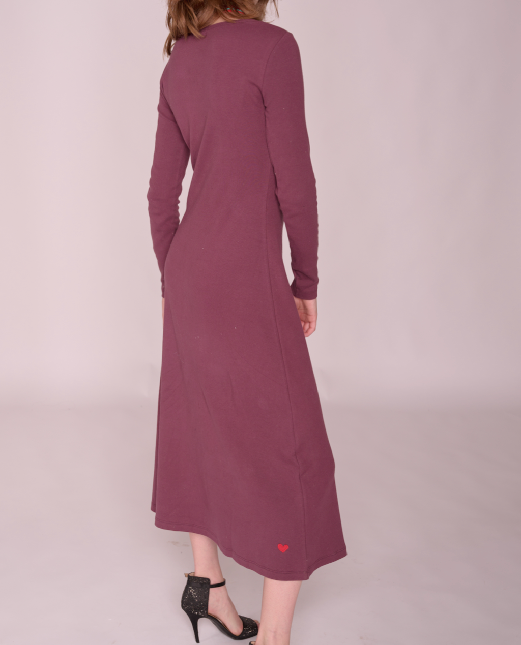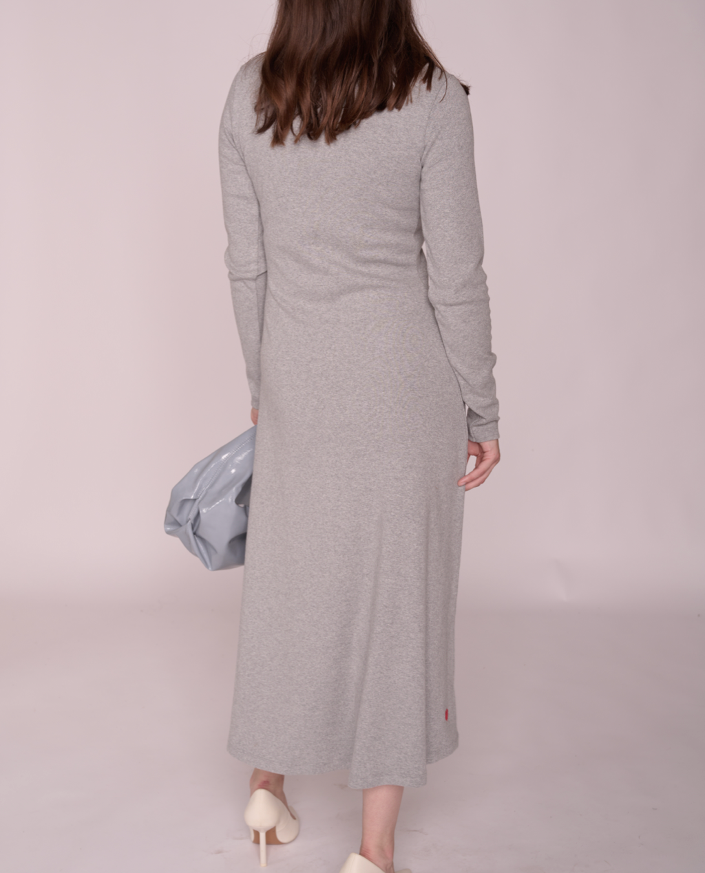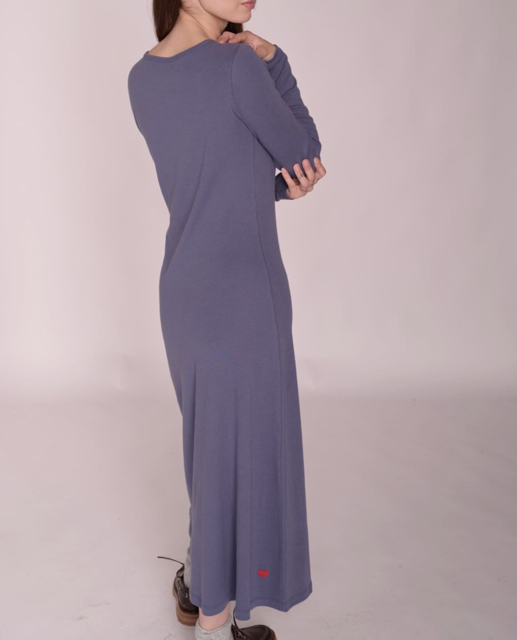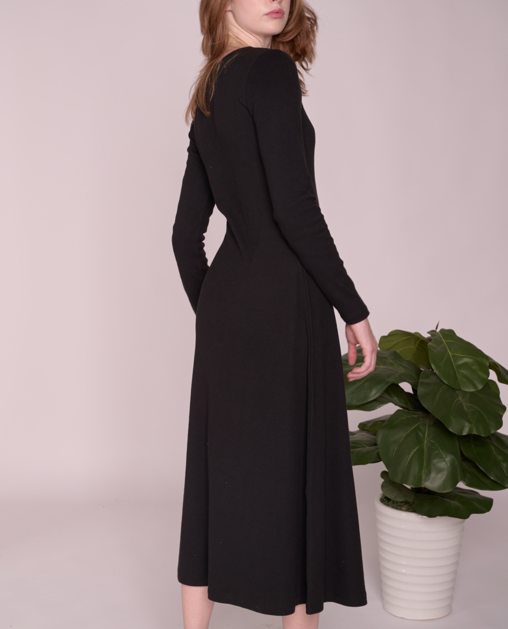 Cozy and flattering, classic midi dress, sliming bodice with a-line skirt. Stretchy 100% cotton rib fabric, with beautiful square neckline.