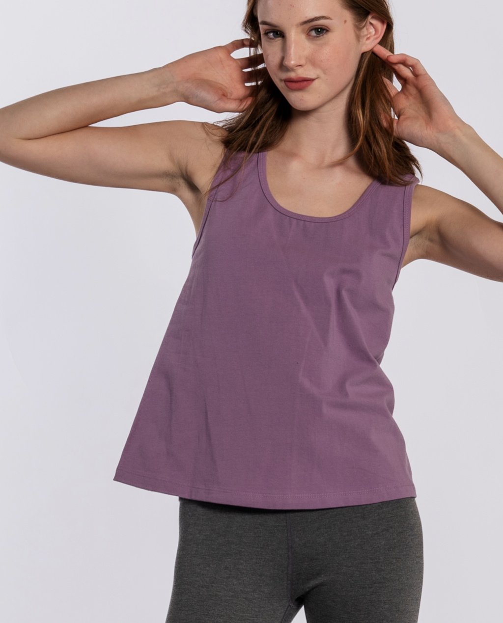 Flowy racerback tank with scoop neckline allowing maximum coverage. Great for layering over a sports bra! Also makes a great wardrobe staple outside of the gym, made with 100% cotton.