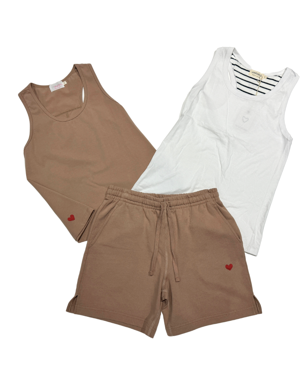 Radiate confidence with our Radiant Bundle! This dynamic trio includes two stylish racerback tanks paired with comfy sweatshorts. Whether you're hitting the gym or embracing laid-back vibes, the Radiant Bundle ensures you shine bright in fashion-forward activewear. All pieces made with 100% cotton. Savings of $74 in this bundle!