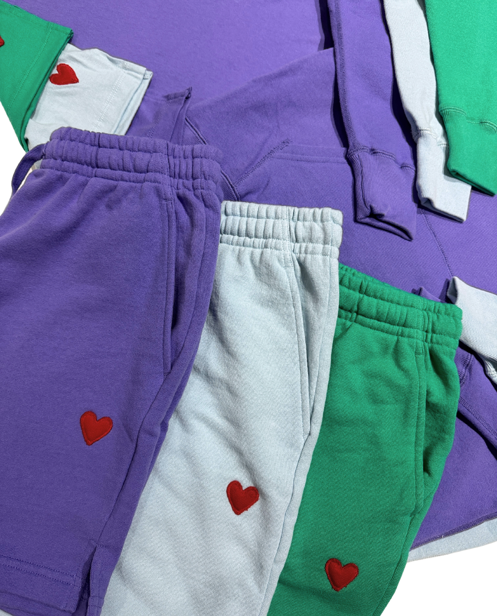 Versatile shorts with a comfortable fit, with spacious pockets and functional drawstring. Made sustainably in Canada with 100% cotton, and 50% recycled materials. Added touch of our upcycled red heart.
