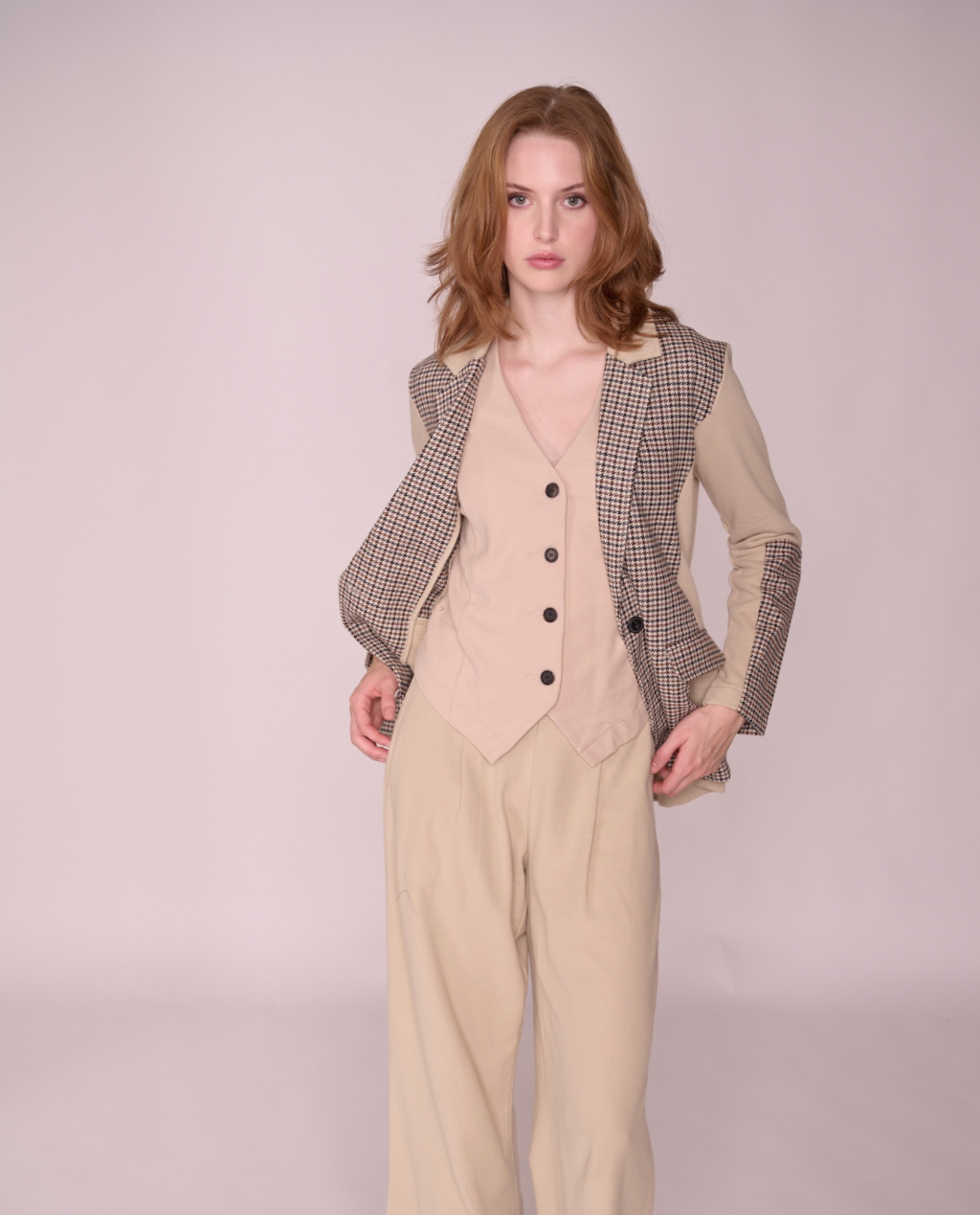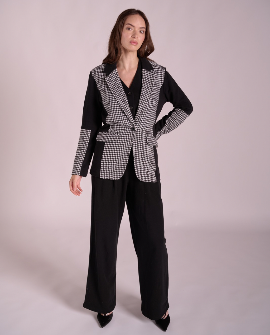Introducing the Sarah Blazer—a bold twist on classic tailoring. Designed with a sleek silhouette, this blazer features subtle details like an upcycled red sweater heart patch that adds a unique, sustainable touch. Perfect for elevating your everyday look, the Sarah Blazer effortlessly combines structure and style, making it a standout piece for any wardrobe.