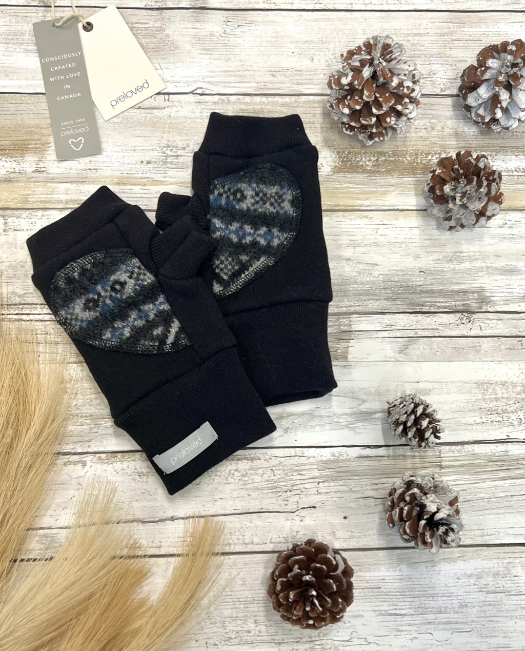 The perfect practical winter accessory perfect for those on the go, featuring upcycled heart panel on the top. Makes the ideal gift or stocking stuffer.