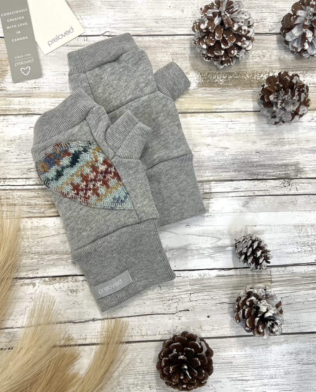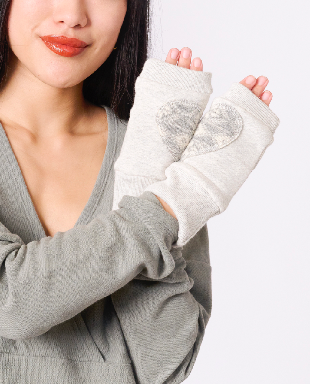 The perfect practical winter accessory perfect for those on the go, featuring upcycled heart panel on the top. Makes the ideal gift or stocking stuffer.