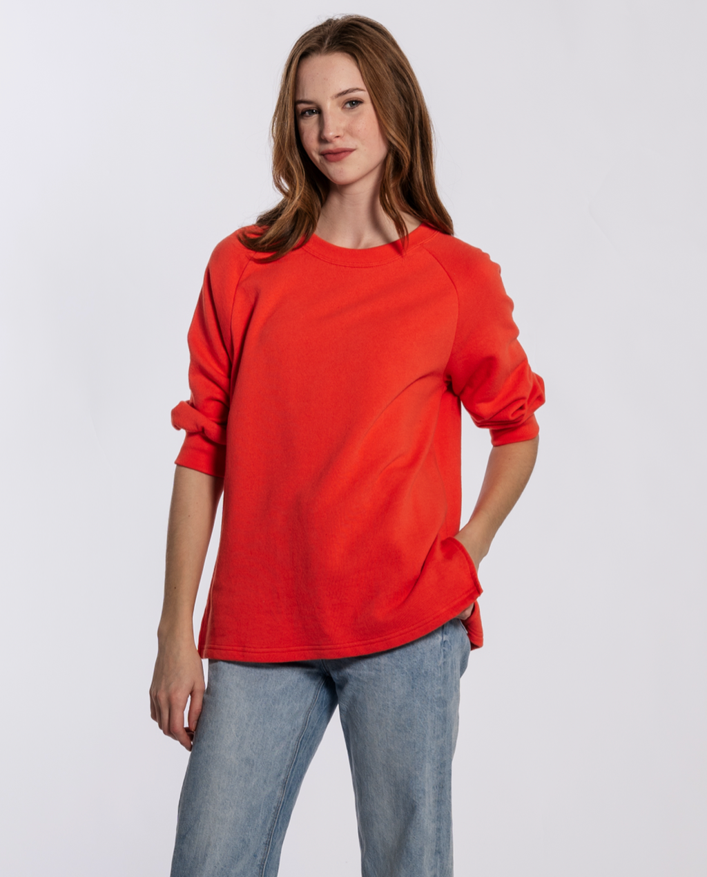 The details in the sleeve and raglan design makes the Nora a sophisticated sweatshirt. Made with 100% cotton and features our signature heart patch.